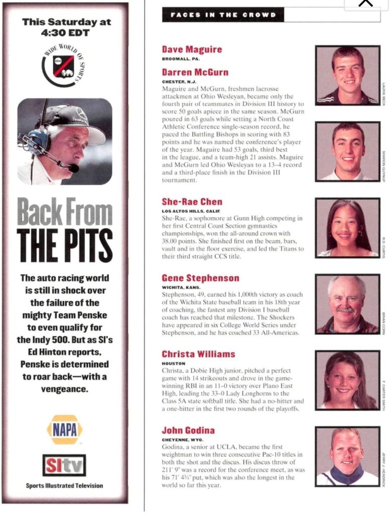 When I look at my life, I see myself as a lifelong learner, a tech entrepreneur, an educated citizen, a former competitive athlete, a wife, and a mother. Although I was a former SI Face in the Crowd (see below) and had aspirations to compete in the Olympic Games, my life took a different path.